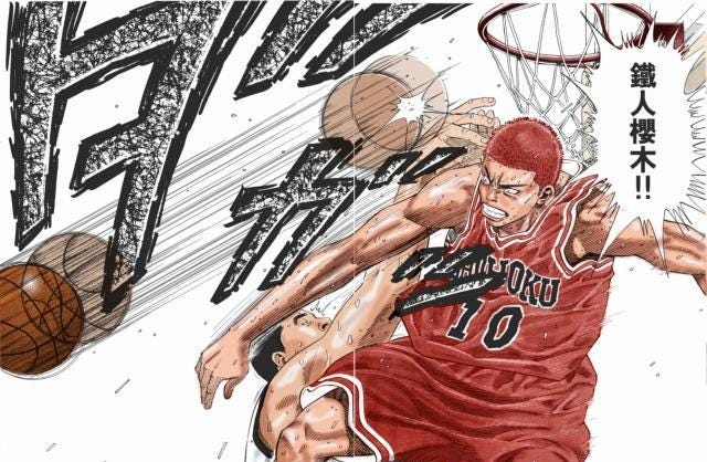 Imagine a Slam Dunk VR game, faithfully reproducing classic comic scenes through specific scenarios and triggers, like Sakuragi giving Miki his lunch box cover below!