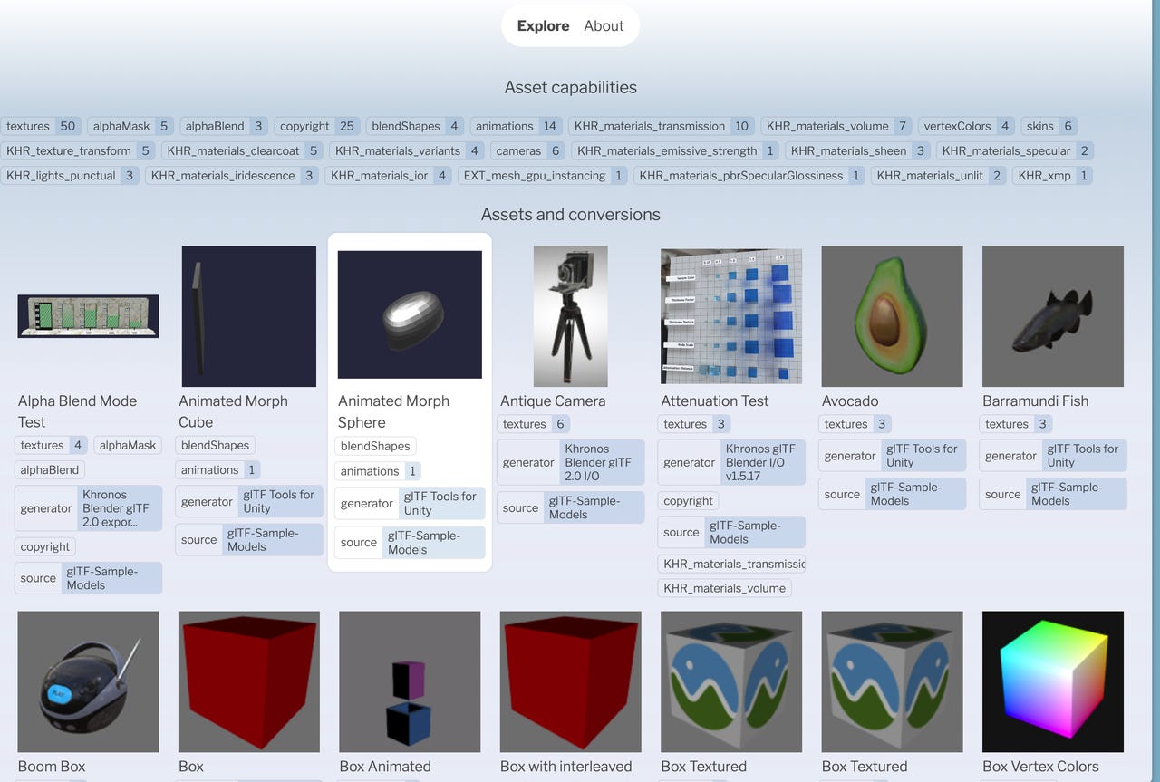 On this page, the Needle team displays the models in glTF-Sample-Models on the Web, and also provides the corresponding USD format files converted using Three.js and Blender, through open source collaboration to check for potential issues in each capability, and through test sets to demonstrate the scope currently supported by the conversion tools.