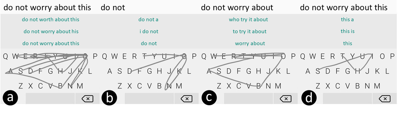 The following is a schematic diagram of Gesture Typing for consecutive multiple English words: