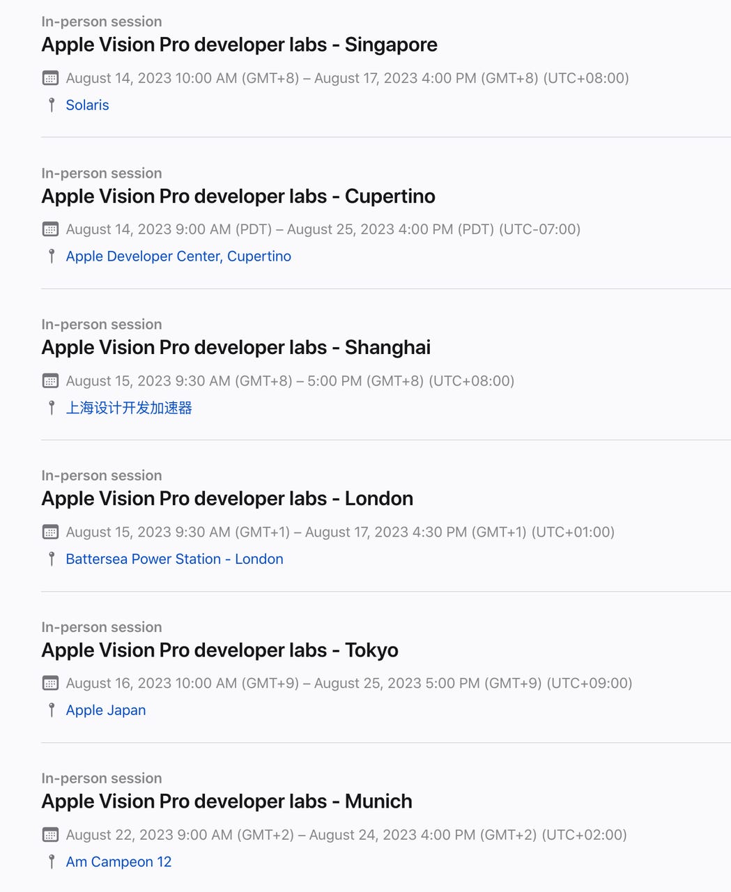 Before the official launch of Apple Vision Pro, in addition to development on simulators, developers can also apply for developer kits or apply to visit the developer labs located in Cupertino, London, Munich, Shanghai, Singapore and Tokyo for real machine debugging.