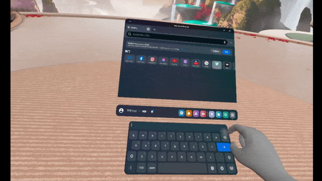 Supports slide keyboard input: Gesture Typing (also known as Swip Typing) is an input method for smartphones that first became popular on Android and has been available on iOS since iOS 13. In spatial computing, input methods are not as mature as qwert or 9-grid keyboards on phones, because they inherently lack physical feedback and considerations of accuracy and robustness. Gesture Typing may be a very good spatial input method. However, the accuracy of Gesture Typing recognition on the Oculus platform is currently not high, and does not support multi-word input. (For multi-English word input methods based on Gesture Typing, see the paper Phrase-Gesture Typing on Smartphones, and SwiftKey which enables multi-English word input by introducing spaces)