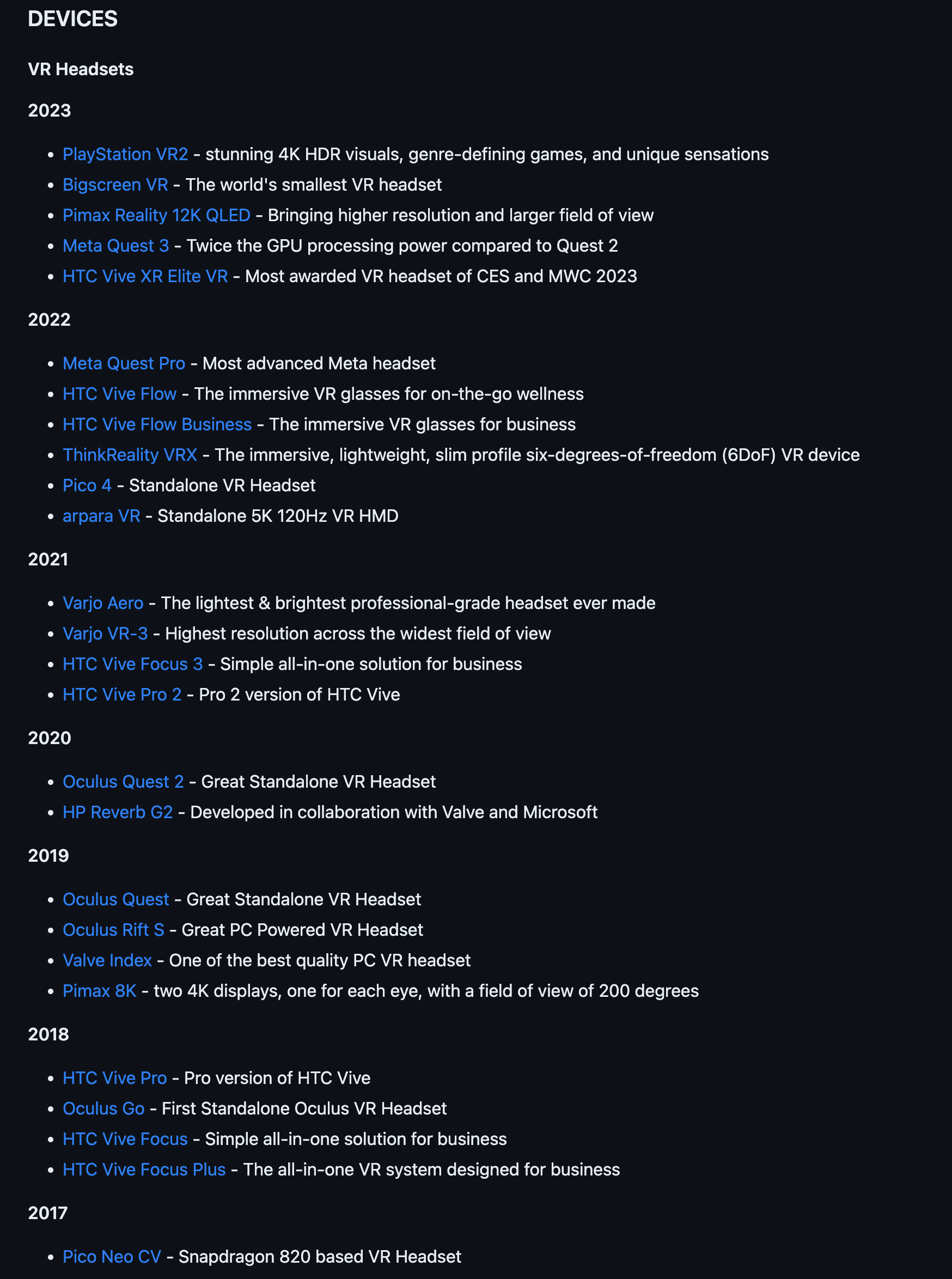 If you are not familiar with various XR devices, the DEVICES section will also help you to have a rough idea of the various devices in the XR world and the corresponding time points.